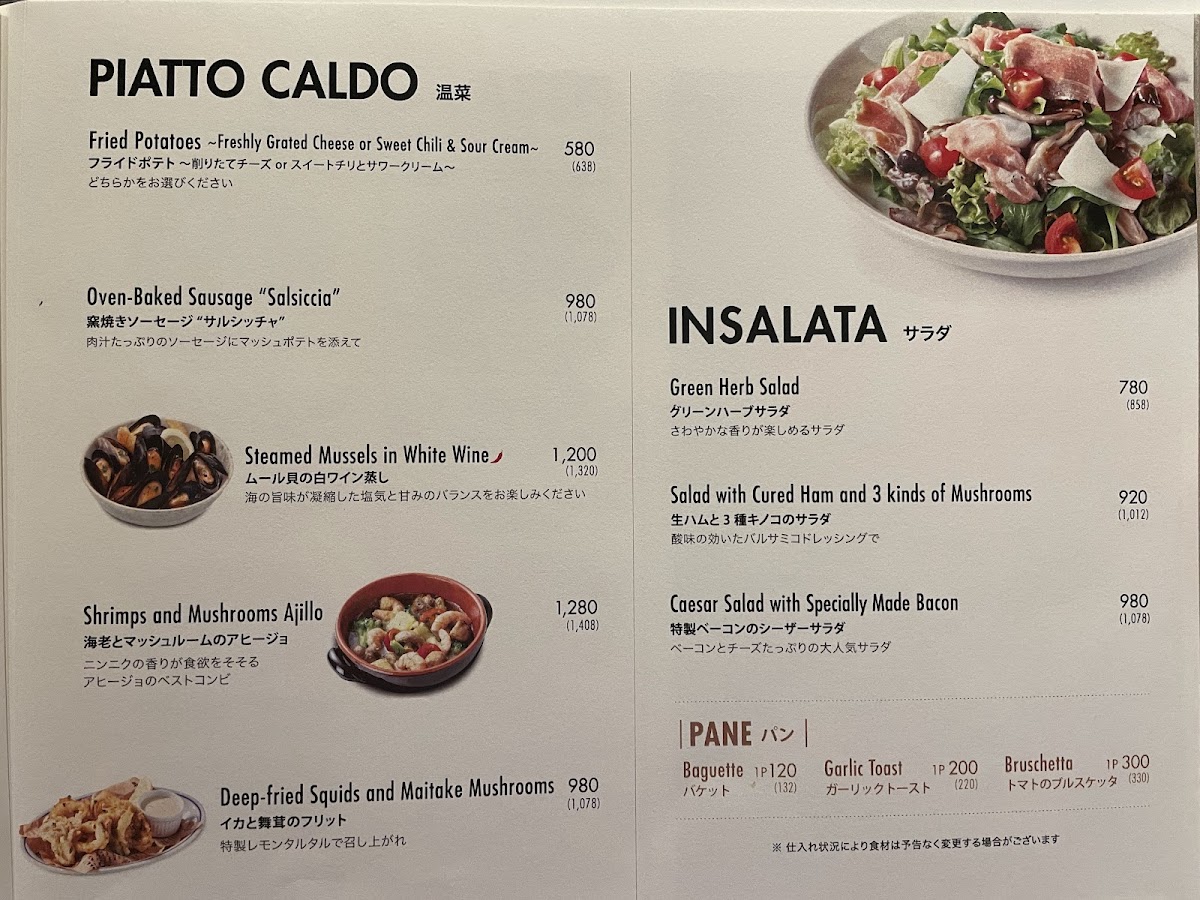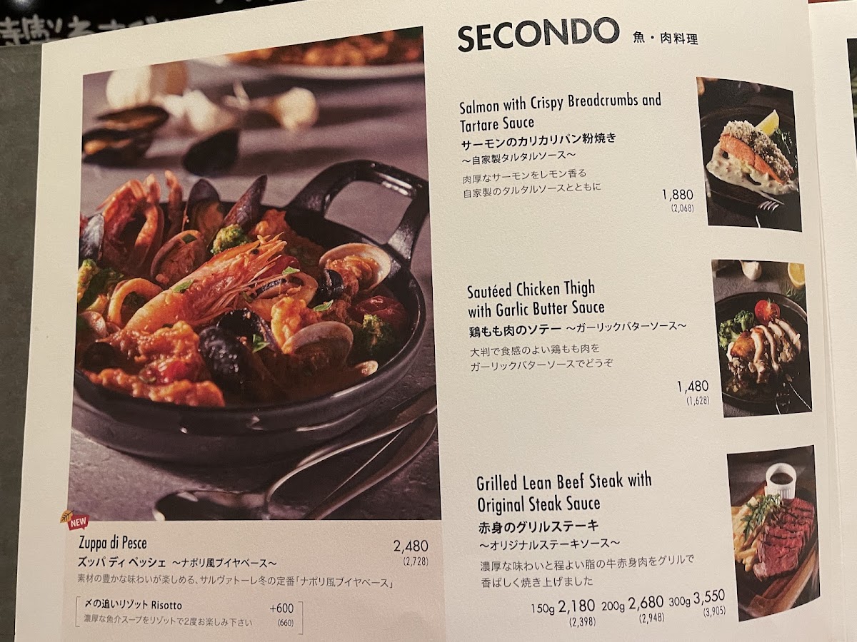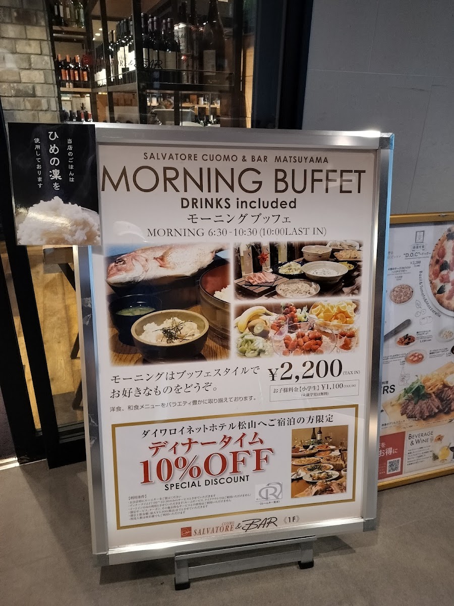 From a reviewer’s perspective, the menu at Salvatore Cuomo & Bar 松山 impresses with both its breadth and attention to detail, making it a destination for varied dining experiences. For lunch, the LUNCH BUFFET~ランチブッフェ~ offers a 90-minute weekday buffet, allowing diners to sample a variety of fresh Italian-inspired dishes. The PARTY section caters to larger gatherings with multiple tiered options: the Luxury Course features 贅沢トリュフピッツァ, grilled lean beef steak, aged prosciutto, mussels, fritto, and pasta, spanning 8 dishes and 12 items; the Deluxe Course highlights Wagyu beef grill, Margherita and Quattro Formaggi pizzas, and a selection of appetizers and pasta across 7 dishes and 11 items; while the Casual Course, popular for its approachable yet satisfying offerings, includes Margherita, prosciutto, 4 Italian-style appetizers, seasonal fritto, and pasta, totaling 5 dishes and 8 items. For dinner, the menu emphasizes specialty pizzas such as D.O.C and Four-Cheese Pizza with Honey, complemented by a robust wine selection featuring sparkling, white, and red wines, along with sparkling wine bottles. Cocktail enthusiasts can enjoy the original sangria (rosso and bianco), YUZU gin tonic, alongside beer and highball options, while non-alcoholic choices include mocktails like Lemony Lin Fresca, Sanpellegrino 500ml, and classic espresso and tea selections. Overall, the menu balances indulgent, high-end offerings with approachable favorites, providing flexibility for both casual lunches and elaborate dinners, all underpinned by the restaurant’s Italian culinary expertise.