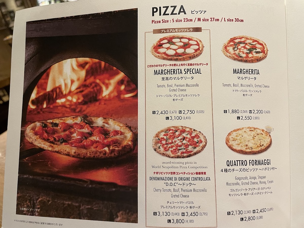 「ナポリピッツァ世界コンペティション最優秀賞」 (チェリートマト・バジル・モッツァレラ・粉チーズ) S…3,443円 M…3,795円 L…4,180円